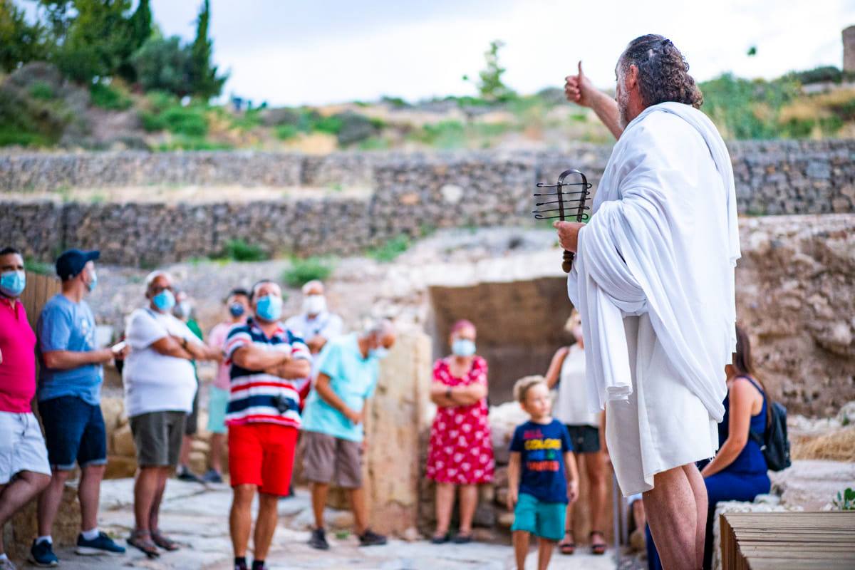 Una visita didáctica guiada, que aplica las nuevas tecnologías como son las recreaciones virtuales al yacimiento, donde los asistentes a través de una tablet y conducidos por un guía se mostrarán como eran las ceremonias en el templo, los baños en las termas o los fastuosos banquetes.